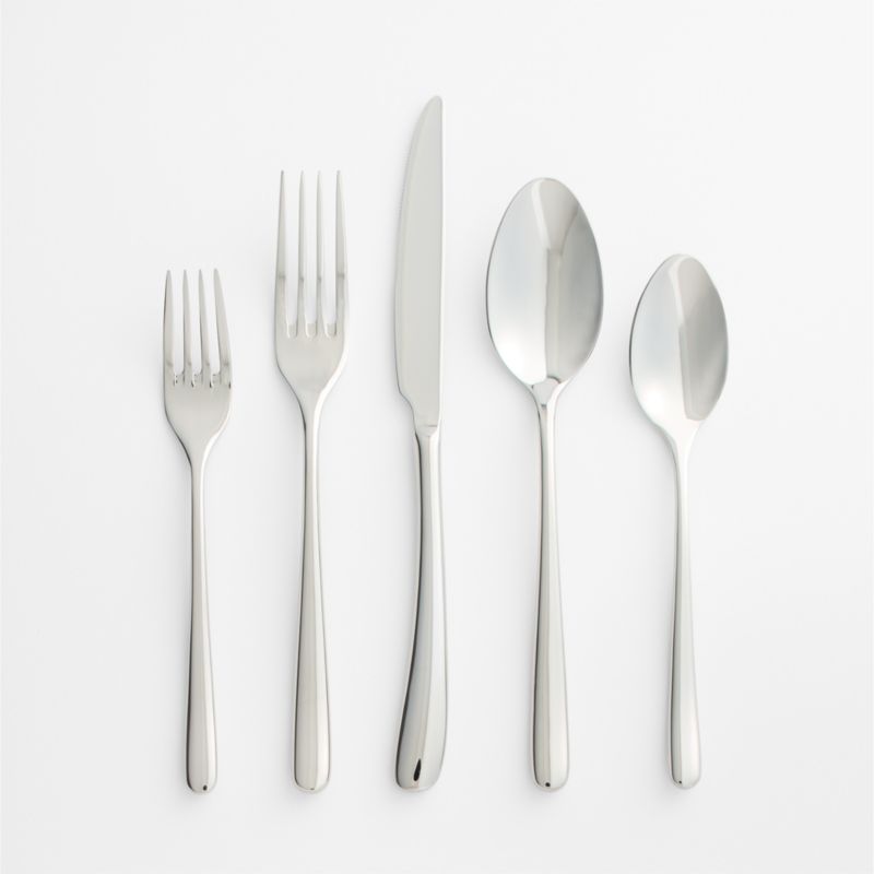 Clean curves and a gleaming mirror finish give this flatware set—and your table—a fresh look and feel. Crafted of premium stainless steel forged into durable utensils with fluid, flowing handles, the 20-piece set stands up to everyday dining and dishwasher use. The four place settings offer elegance and versatile, timeless style.