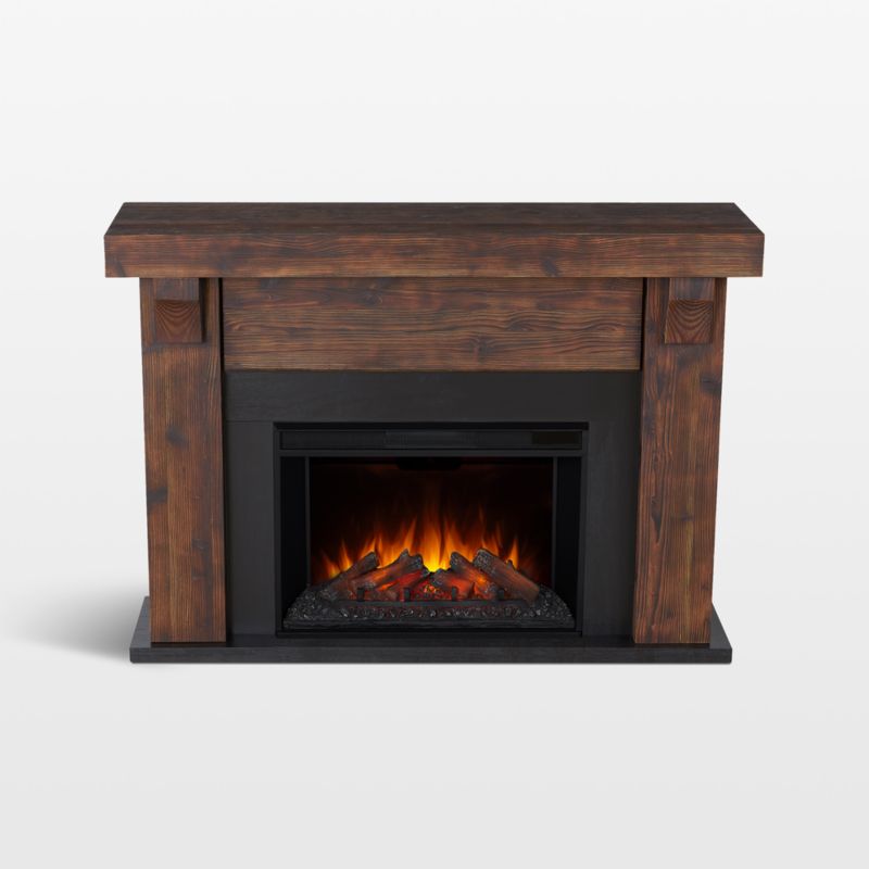 Add the coziness and charm of a wood-burning hearth to your home with our electric fireplace, a Crate & Barrel exclusive. Designed in the style of a traditional fireplace—complete with a wood surround and mantel with a dark cherry finish—Canyon creates dynamic glowing embers and warm dancing flames in six colorways. Use the remote control to set your desired brightness, temperature and time, or choose the heatless flame option when you want the look but not the feel of fire.