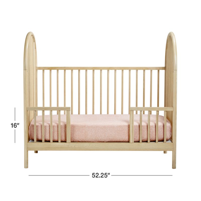 Update our Canyon Natural Spindle Crib for your rapidly growing little one with this toddler rail. It allows you to easily convert the crib into a toddler bed that's safe, sturdy and modern. Effortlessly matching the crib's easy minimalism, it was crafted from solid oak with a beautiful natural finish. Complete your child's bedroom with the other pieces in our exclusive Canyon collection designed by Leanne Ford.