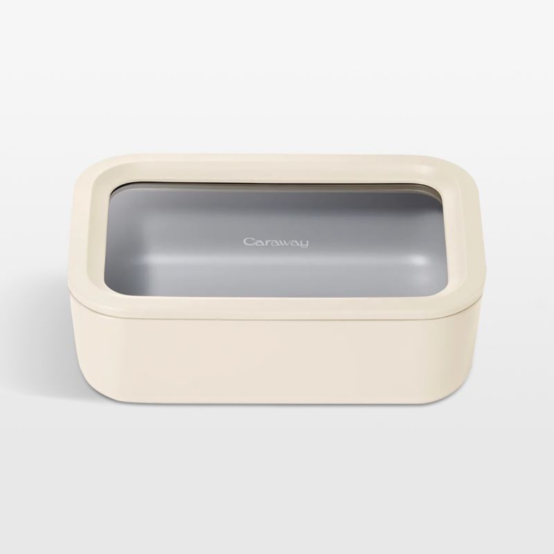 Caraway Home brings its signature beautiful and modern minimalism to food storage with this lidded container. Crafted of glass coated with non-stick ceramic in a fresh hue, the rectangular dish elevates leftovers, lunches and more while going from freezer or fridge to microwave or oven—and cleans up easily in the dishwasher. The glass lid with matching rim, silicone gasket and Air Release Technology provides an airtight seal to keep contents fresh (and odors out).