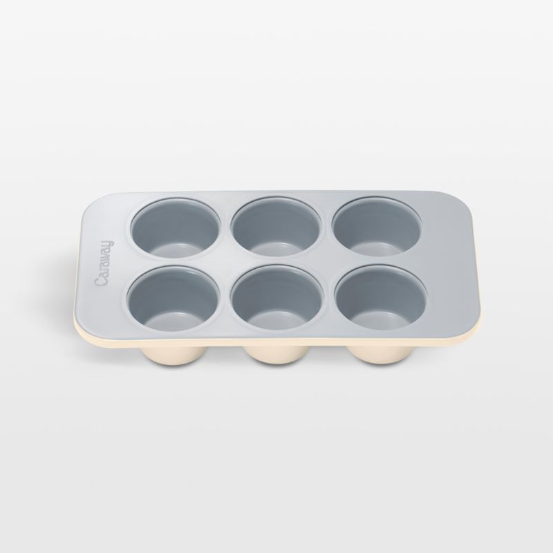 Bake a half-dozen muffins, cupcakes or individual frittatas in this must-have mini muffin pan. Finished in a naturally non-stick ceramic coating, the aluminized steel pan releases baked goods easily for quick cleanup. The cream-hued exterior gives the muffin tin a fresh look. Pair with our other Caraway Home mini pans to build a modern bakeware collection perfectly sized for small-space kitchens and compact ovens.