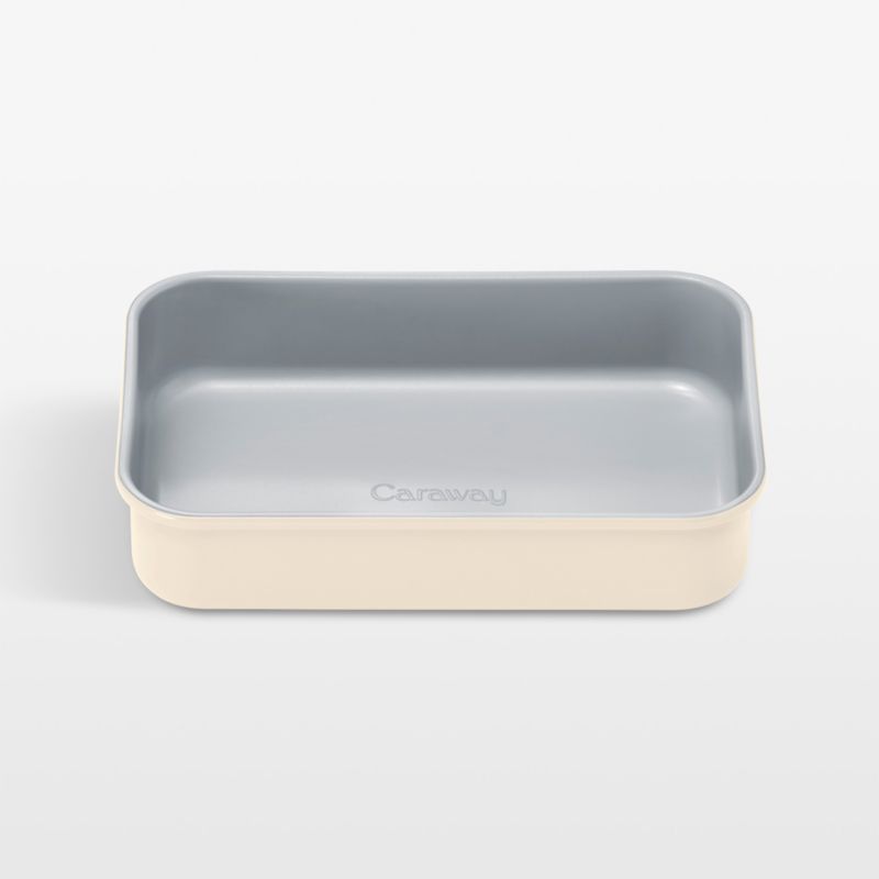 Bake small batches of brownies, cornbread, lasagna and more in this must-have mini baking pan. Finished in a naturally non-stick ceramic coating, the aluminized steel pan releases baked goods easily for quick cleanup. The cream-hued exterior gives the rectangular baker a fresh look. Pair with our other Caraway Home mini pans to build a modern bakeware collection perfectly sized for small-space kitchens and compact ovens.