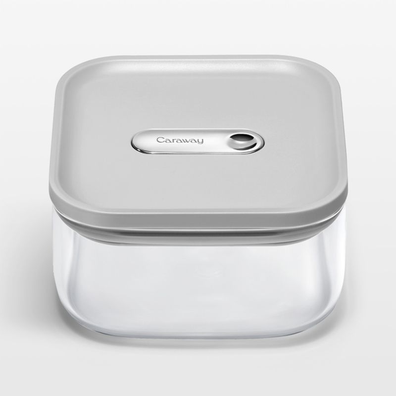 Neat, organized and freshness-protecting food storage is yours with this container from Caraway. The glass container resists scratches, stains and odors, providing a clear view of what's stored inside. A ceramic-coated lid is precision engineered to lock in freshness and keep out air. Simply press the lock on the lid to engage the airtight seal. Pair the small stackable container with the other sizes for seamless, versatile food storage