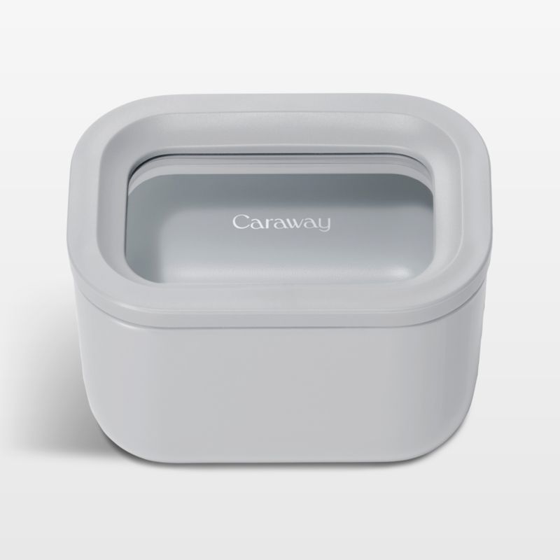Caraway Home brings its signature modern minimalism to food storage with this mini lidded container. Crafted of glass coated with ceramic in a modern hue, the stackable non-stick rectangle elevates leftovers, lunches and more while going from freezer or fridge to microwave or oven. The glass lid with a matching rim and silicone gasket provides an airtight seal to keep contents fresh.