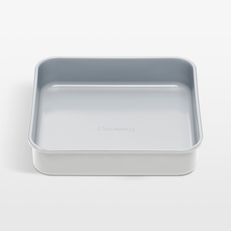 Bake blondies, cornbread or fruit crumbles in this essential baking pan. Finished in a naturally non-stick ceramic coating, the aluminized steel pan releases baked goods easily for quick cleanup. The grey exterior gives the square pan a fresh look. Pair with other Caraway Home bakeware to build a modern collection.