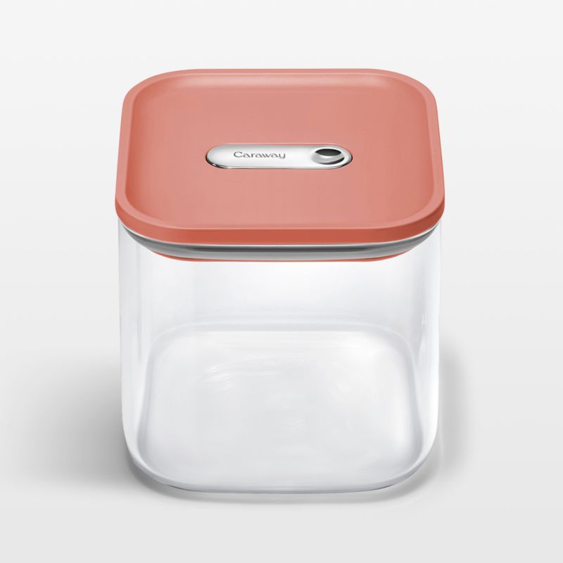 Neat, organized and freshness-protecting food storage is yours with this container from Caraway. The glass container resists scratches, stains and odors, providing a clear view of what's stored inside. A ceramic-coated lid is precision engineered to lock in freshness and keep out air. Simply press the lock on the lid to engage the airtight seal. Pair the medium stackable container with the other sizes for seamless, versatile food storage