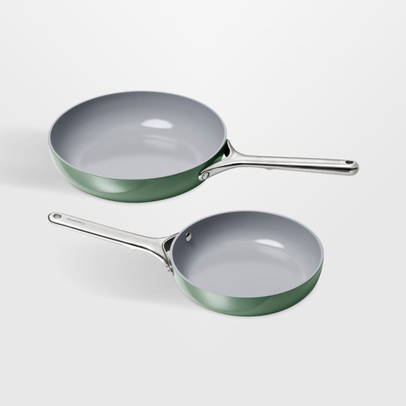 You'll be smitten with these frying pans that are as lovely to look at as they are to use. Featuring mirror-polished stainless steel handles and sage green exteriors, the duo goes from stove to oven to table to serve cornbread, sauteed vegetables and breakfast favorites. The double layer of ceramic coating provides superior non-stick performance while holding heat efficiently, making it easy for eggs, pancakes, burgers and more to slide right off the 8- and 10.5-inch pans.