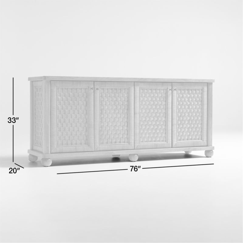 Classic yet of-the-moment, wicker brings texture and lightness to our Carlyle credenza's beautifully grained white oak frame. Skillfully crafted rattan graces the paneled sideboard with wrapped borders and basketweave insets that break up the look of a wood-focused room with complementary texture. Two double-door cabinets open to one adjustable shelf each for versatile storage in the dining room, living area or office. Decorative key pulls and bun feet add to the credenza's eye-catching appeal.