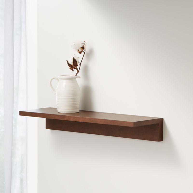 Revealing just a peek of the supportive band underneath, our walnut-tinted hardwood shelf seems to float on the wall. Designed by Ana Reza-Hadden, the Carren shelf offers a minimalist way to showcase your photo frames, vases and other small treasures.