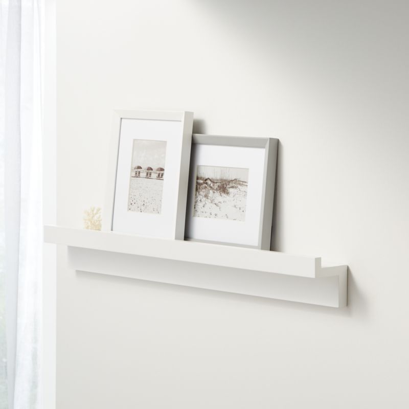 Our Carren shelf is all about angles with two vertical planes that create a helpful rail to protect your display and an attractive apron that lies flush against the wall. Picture frames, vases and featured treasures will shine on this wall-mounted ledge of white-finished hardwood. Designed by Ana Reza-Hadden, the Carren shelf is a Crate and Barrel exclusive.