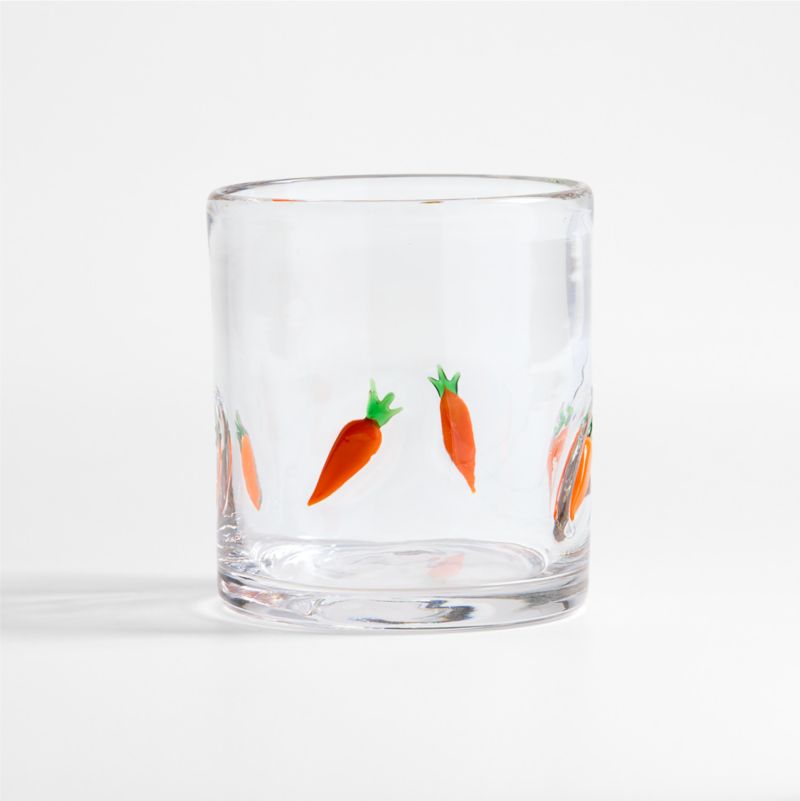 Scattered with a bushel's worth of carrots, our double old-fashioned glass makes the perfect vessel for Pimm's Cups, Mimosas, carrot juice and other springtime sips. Hand-blown by skilled craftspeople, the clear glass vessel boasts clean curves and a crop of embedded glass carrots topped with vibrant greenery. The rocks glass is a charming addition to an Easter buffet, spring brunch or Easter basket.