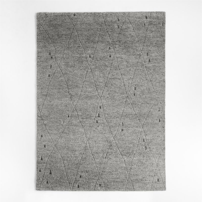 Our Casablanca rug reinterprets the traditional Moroccan rug with an updated pattern full of texture, dimension and depth. Made of pure New Zealand wool - prized for its long, pliable fibers, lustrous sheen and incomparable softness - the rug is made by highly skilled artisans who knot and clip the wool to various depths. Low-pile sections within the plush construction create the irregular diamond patterns and scattered triangles that give this rug its abstract appeal. Enriched by the naturally variegated dark grey tones of the wool, the rug lends softness and sophistication to high-traffic areas.