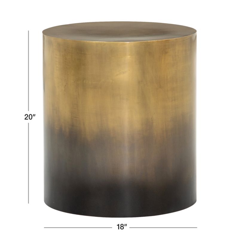 Transitioning from dark to light in a gradual blending of tones, Cassidy's ombre finish in antique brass plays up the dramatic possibilities of its pure cylindrical shape. Stunning on its own, the end table also pairs with the matching Cassidy bunching table for a dimensional grouping that's bold and contemporary.