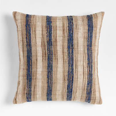 An irresistibly soft and slubby weave gives this throw pillow a relaxed look and feel that you'll want to snuggle up with every day. The inclusion of silky viscose adds a sophisticated sheen to the organic beauty of sustainably sourced linen fibers. Yarn-dyed deep indigo, the fringed pillow looks chic and casual tossed on a sofa, armchair or bed-especially paired with the coordinating throw blanket. Our exclusive blue pillow includes your choice of a plush feather-down or lofty down-alternative insert.