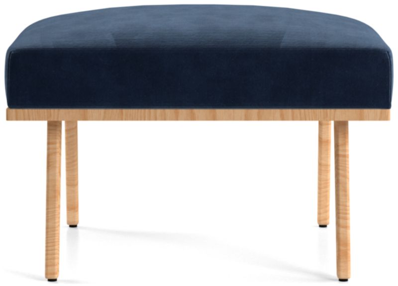 The Cavett ottoman props up feet on a basketweave cushion atop sleek, slender legs. The Cavett ottoman is a Crate & Barrel exclusive.