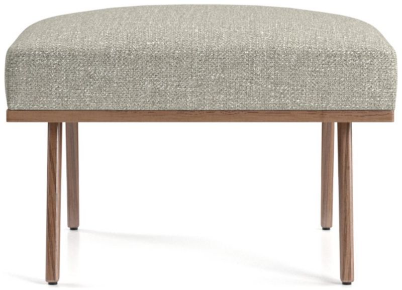 The Cavett ottoman props up feet on a basketweave cushion in varied tones of brown atop sleek, slender legs. The Cavett Ottoman is a Crate and Barrel exclusive.