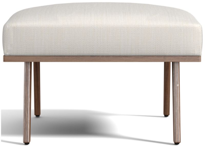 The Cavett ottoman props up feet on a basketweave cushion in varied tones of brown atop sleek, slender legs. The Cavett Ottoman is a Crate and Barrel exclusive.
