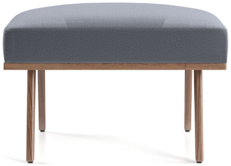 The Cavett ottoman props up feet on a basketweave cushion in varied tones of brown atop sleek, slender legs. The Cavett Ottoman is a Crate and Barrel exclusive.