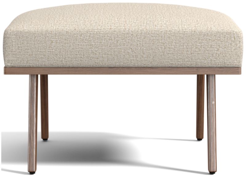 The Cavett ottoman props up feet on a basketweave cushion in varied tones of brown atop sleek, slender legs. The Cavett Ottoman is a Crate and Barrel exclusive.