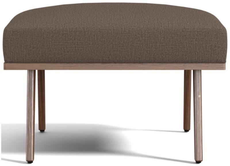 The Cavett ottoman props up feet on a basketweave cushion in varied tones of brown atop sleek, slender legs. The Cavett Ottoman is a Crate and Barrel exclusive.