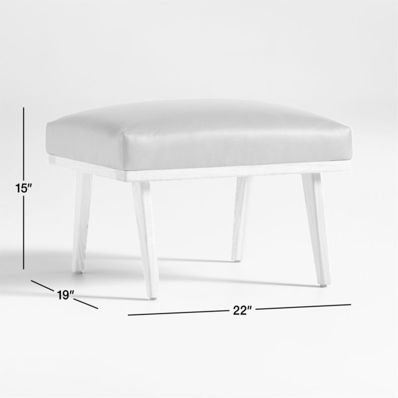Relax back to another modern time. Cavett's mid-century lines capture the best of 1950s design with this ottoman of solid ash and rich leather. Dramatic design attracts the eye from every angle. A sleek choice for smaller living rooms and family rooms, the leather ottoman upholstered in luxe full-grain, full-aniline leather adds comfort when paired with Cavett Leather Chair. Each leather ottoman is distinguished by the unique characteristics of its beautiful hides, finished with oils and wax for an authentic look that will develop an even richer patina over time. Cavett Leather Ottoman is a Crate & Barrel exclusive.