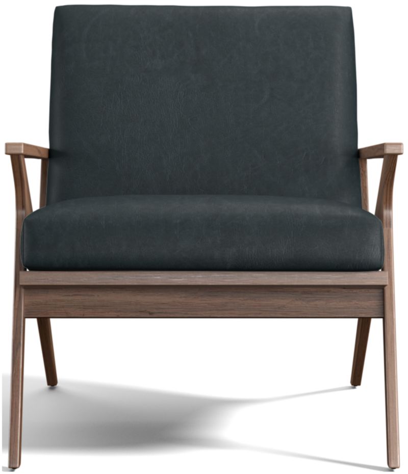 • Cavett Leather Walnut Wood Frame Accent Chair