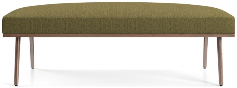 Sleek, slender legs and a basketweave cushion in varied tones of brown make the Cavett bench a welcome presence in any room. The Cavett Bench is a Crate and Barrel exclusive.