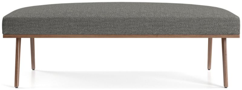 Sleek, slender legs and a basketweave cushion in varied tones of brown make the Cavett bench a welcome presence in any room. The Cavett Bench is a Crate and Barrel exclusive.