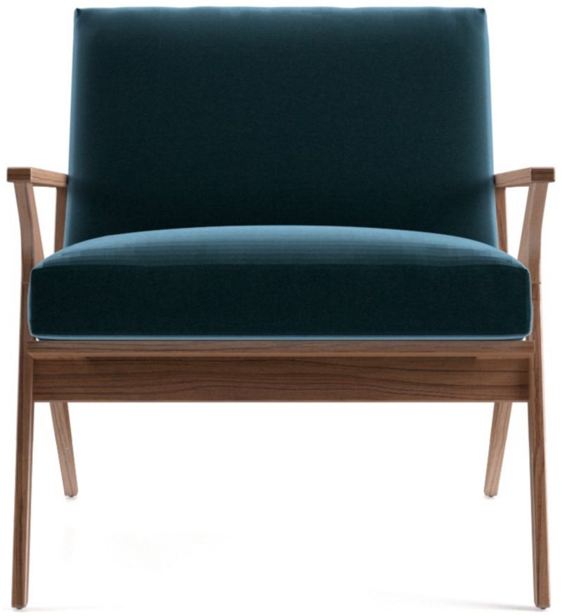 The Cavett chair's slight recline angles you back comfortably with supportive cushions upholstered in a polyester basketweave that layers varied tones of brown. The Cavett Chair is a Crate and Barrel exclusive.