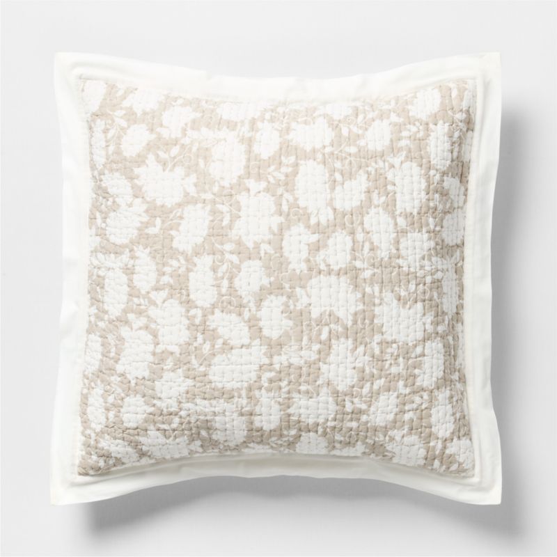 Inspired by vintage wallpaper, our Celeste sham layers on pattern with an intricate floral design and an heirloom vibe. Tendriled vines and showy blooms twine and bloom in white on warm beige, giving the florals a handpainted feel. Quilted by hand, our Celeste pillow sham textures organic cotton with a classic pick stitch, a hallmark of handcrafted textiles. Light beige thread adds dimension while highlighting the artisanal technique. Edged with bold flanges, the lightweight cotton-filled sham makes a bed with subtle texture and depth. Add the matching floral or solid quilt to complete the modern-homespun look.