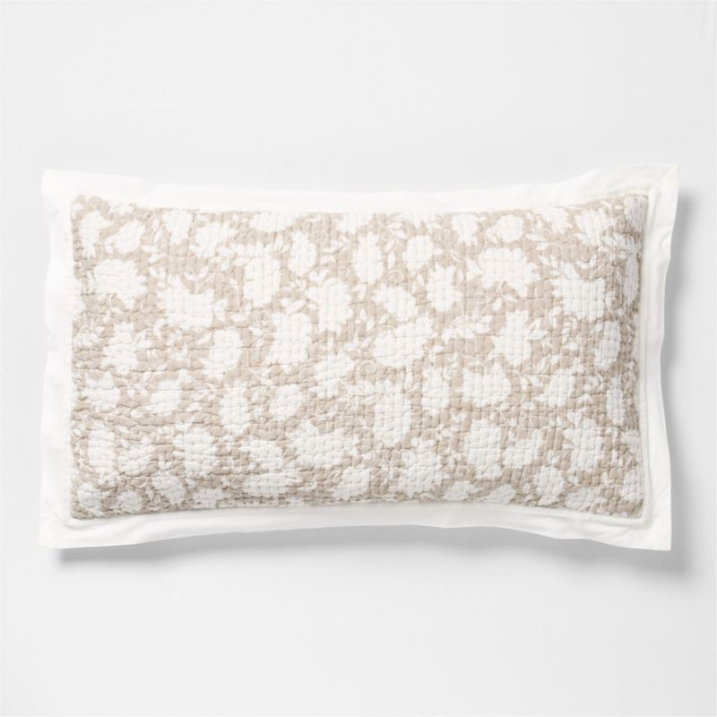 Inspired by vintage wallpaper, our Celeste sham layers on pattern with an intricate floral design and an heirloom vibe. Tendriled vines and showy blooms twine and bloom in white on warm beige, giving the florals a handpainted feel. Quilted by hand, our Celeste pillow sham textures organic cotton with a classic pick stitch, a hallmark of handcrafted textiles. Light beige thread adds dimension while highlighting the artisanal technique. Edged with bold flanges, the lightweight cotton-filled sham makes a bed with subtle texture and depth. Add the matching floral or solid quilt to complete the modern-homespun look.
