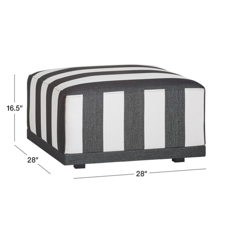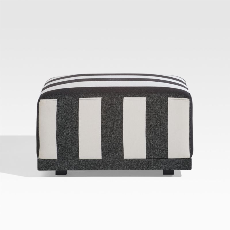 We channeled 1950s cabana culture to create our sun-seeking Cerca outdoor collection. Bold black-and-white stripes inspired by vintage outdoor furniture roll over the ottoman's blocky seat cushion to exaggerate Cerca's playful proportions. Chunky black legs complement the look while giving the ottoman a slight boost. The ottoman is one of four easy pieces in our exclusive and fun-loving Cerca collection.