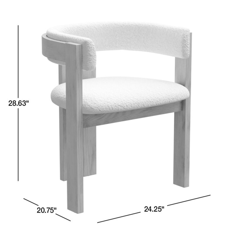 Named for the important ritual of sharing meals together, our Ceremonie chair invites lingering around the dinner table with comfort and casual good looks. The modern wishbone design with an eye-catching double-beamed back flows into arms for a cozy embrace. Made of sustainably sourced red oak, the frame is wire brushed with a hazelnut brown finish to bring out the wood's beautiful grain. Plush padding lends comfort to the seat and U-shaped back upholstered in a textured boucle fabric in neutral oat.