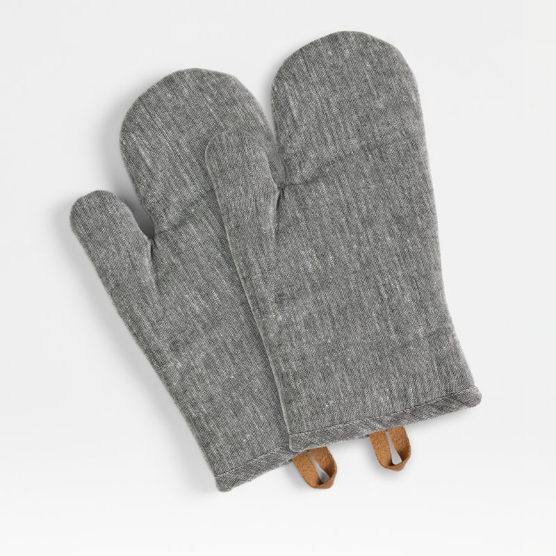 Our classic grey oven mitt combines the great look of chambray with a natural leather hanging loop. Enzyme washed for softness, the blend of linen and organic cotton will soften even more with washing. Pair with the matching apron and pot holder for a cohesive kitchen look or thoughtful host gift.