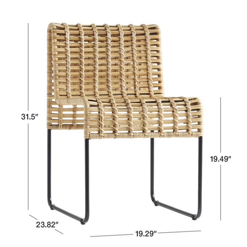 Chaparral moves beyond traditional rattan with a dynamic weave and continuous curves. A complex weave of natural rattan looks fresh and contemporary as it follows the dining chair's sinuous profile. We love the dining chair's surprising mix of black tubular iron and the honeyed tones of natural fiber wicker. Designed for us exclusively, the Chaparral chair pairs beautifully with our wood dining tables.