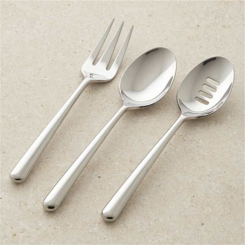 • Set includes serving fork, pierced serving spoon, serving spoon
