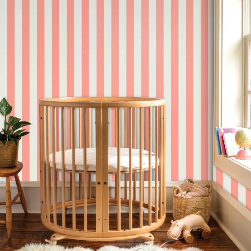 Add some beach vibes to your kid's space with bold pink and white cabana-inspired stripes. A super playful pattern with endless installation possibilities, it's a backdrop that feels right at home in a bedroom, play space or even a bathroom. The wallpaper is made of high-quality, self-adhesive poly-woven fabric. And its peel-and-stick construction makes it easy to remove, so you can enjoy the look without a long-term commitment.