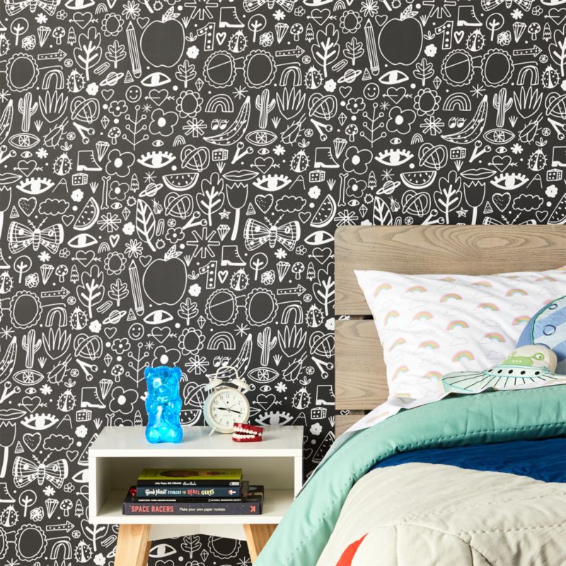 The White and Black Icons Removable Wallpaper has a lively, quirky print in a black and white sketchbook style. Kids will have a blast spotting everything from a planet and a rainbow to a ladybug and a flower. A perfect fit for kids rooms, it'll also add a fun backdrop to playrooms, study rooms or anywhere your little ones hang out. And since it's so easy to stick up and take down, you can keep moving it from room to room.