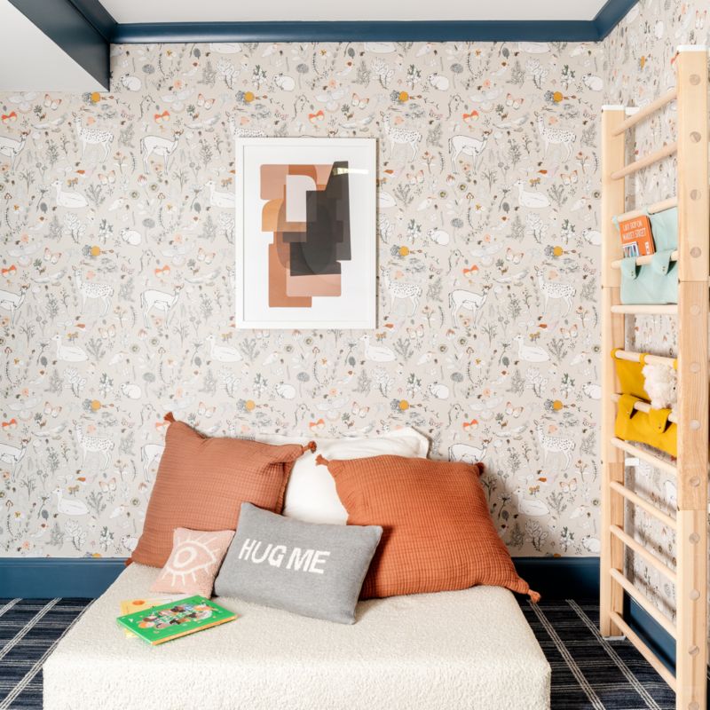 Filled with woodland scenes perfect for little nature lovers, this removable wallpaper by Jacqueline Schmidt brings whimsical detail to a nursery, bedroom or any room of the home. Delicate illustrations of forest friends and foliage come to life on a neutral background that complements any design aesthetic—and doesn't require any commitment.