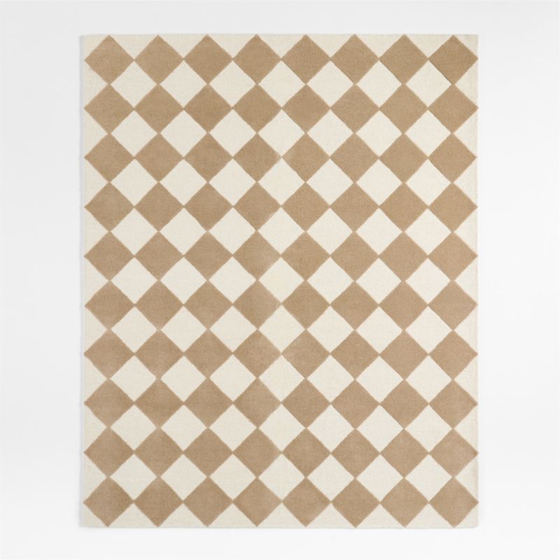 Check it out - our playful Checkerboard Wool Area Rug makes a bold style statement in kids' bedrooms, playrooms and nurseries. And we love the durable long-fiber wool - expertly chosen for stain resistance and reduced shedding. Each rug is hand-tufted by skilled artisans in a tan and ivory checkerboard pattern with high-low construction for extra texture and dimension. The wool's dense cushioning makes it a supremely plush and sturdy choice.
