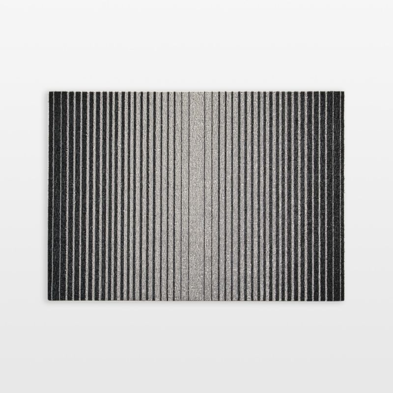 Bold and graphic, this dynamic doormat energizes your porch, entryway or mudroom with variegated stripes inspired by cascading dominoes. The easy-care rug brings ombre interest in a classic black-and-white palette to high-traffic areas both indoors and out. Each mat is woven of PVC yarns treated with TerraStrand and Microban, Chilewich's proprietary compounds that replace petroleum-based plasticizers used to soften yarns and provide antimicrobial protection. We love the way the mesmerizing pattern in crisp black and white sets a modern tone for your home.