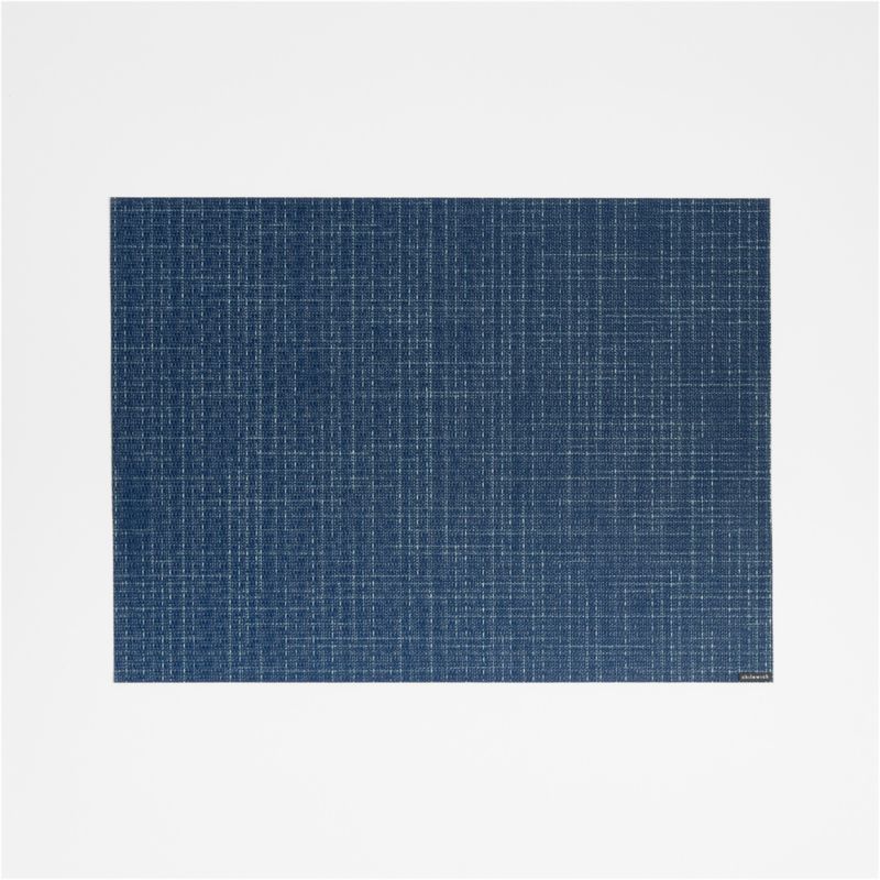 An interrupted grid in tonal values gives this navy placemat its subtle menswear vibe and textural appeal. Designed for us exclusively by Sandy Chilewich, chief designer and owner of Chilewich, the placemat is a striking example of the company's innovative designs created out of a proprietary woven vinyl. Perfectly comfortable on the informal or formal table, the placemat is antimicrobial and resistant to stains and mold.