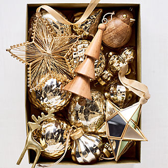 You can purchase high-quality, unique Christmas ornaments from us online 24/7, or at your local Crate & Barrel store. When possible, consider shopping in-person; we love celebrating the holidays, so head to your nearest location to enjoy our displays of Xmas ornaments, decor, stockings, tree accessories and more.