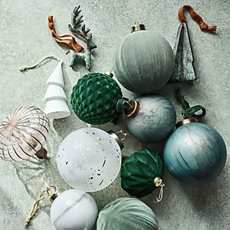 Not only do Christmas ornament sets make choosing tree decorations a breeze, they also help give your tree a cohesive look. For a sleek, contemporary vibe, consider trimming the tree with only baubles from one or two sets of stylish Xmas ornaments, or use a simple set as an anchor and hang the remaining boughs with more eclectic pieces.