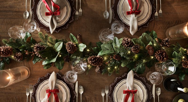 There's no shortage of Christmas place setting ideas and styles, so be sure to find the one that complements the rest of your home and seasonal decor. If the holidays are all about tradition for you and your family, stick with a classic Christmas plate setting featuring a red and green color scheme. Cheerful plaids, evergreen tree motifs and glittery accents are sure to make spirits bright as the countdown to December 25th begins. Prefer a minimalist approach for your Christmas table place settings? Try a Scandinavian feel. Clean white plates, pillar candles, and simple embroidered Christmas napkins combine a modern feel with a winter wonderland color palette that you can enjoy all season long. Complement your holiday place settings with a show-stopping dinner menu to match, whether that's a feast of the seven fishes, tamales and pozole or turkey and gravy-topped mashed potatoes. When the night is over, be sure to utilize your favorite pair of Christmas kitchen towels for quick clean up. Be sure to explore our other festive table decoration ideas to inspire your Christmas entertaining as you make merry with family and friends. Pair your Christmas plate settings with festive holiday decor for the rest of the home, too, to create that cozy atmosphere that makes the season so special. Looking for more holiday ideas? Explore our Christmas shop to discover ornaments, Christmas stockings and other holiday goodies.