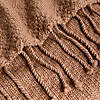 Our camel brown throw couldn't get cozier. Knit of yarn-dyed wool with a hint of acrylic, the supersoft throw blanket rivals a handknit heirloom with chunky stockinette stitching on one side, garter on the other. Long fringe is braided and knotted to further enhance this throw blanket's rustic appeal.