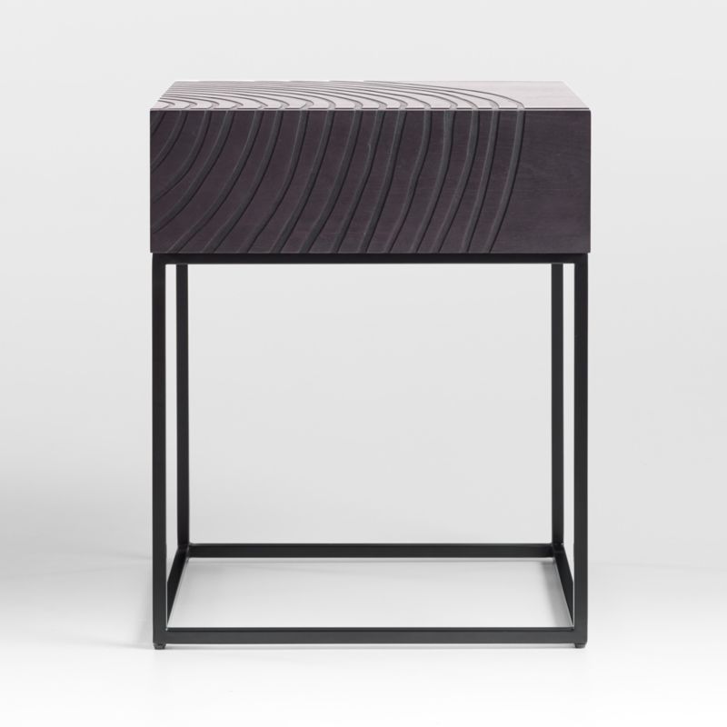 Circulus transforms the bedroom with one-of-a-kind artistry, rhythmic pattern and a light wood finish. Incised concentric circles with a hand-drawn look radiate along the top and sides of the nightstand. Floating on an open black iron base, the nightstand is given a white birch finish that makes the most of Circulus's artisanal craftsmanship. A single drawer is integrated into the nightstand's clean design. Each piece is unique.