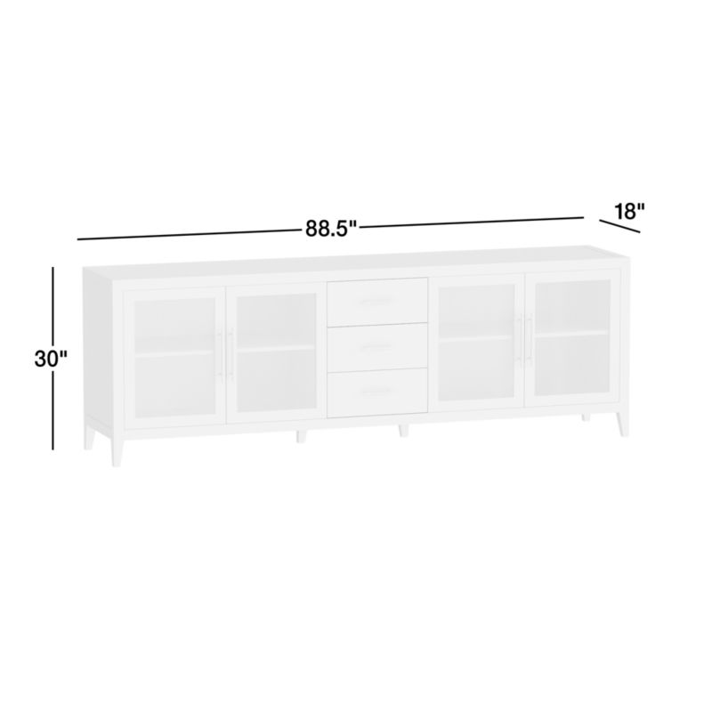 We've translated the refined elegance of our popular Clairemont accent tables into a storage collection made of beautifully grained oak. Standing on tapered legs, the clean-lined media console features neat mitered corners and recessed panels on the top and sides. Glass-paned cabinets, each with an adjustable shelf, flank a stack of three drawers. Brass-finished pull handles with distressed leather wrapping provide access along with a mixed-material grace note. A light driftwood finish with ivory cerusing highlights the wood's beautiful cathedral graining.