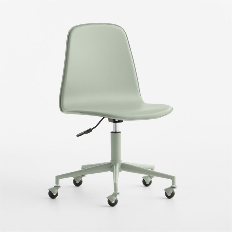Our seamless, modern take on the classic desk chair, this supportive design lets the good times roll. Beauty meets functionality with a sleek, curved silhouette and 5-leg metal base. The padded leather seat swivels 360 degrees for easy maneuvering. Designed to grow with kids, this chair also adjusts up and down, and rolling caster wheels travel smoothly over wood, carpet or area rug.