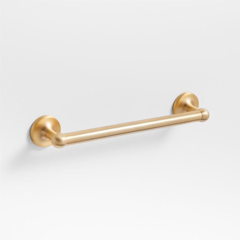 Sometimes it's the small things that pull a room together. That's why we've designed a hardware collection with modern silhouettes and a touch of tradition to give your kitchen and bathroom that perfect finishing touch. We named this five-inch bar pull Classic for a reason—a round bar with the subtlest of ball finials is secured by clean rosette bases for a timeless look. Crafted of brass, the bar pull has a slim profile and a gleaming brushed finish. Hardware is included to make it easy to refresh the look of dresser drawers, cabinet doors and vanities.